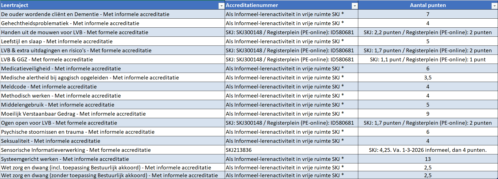Hieronder vind je een overzicht van alle leertrajecten van de VGN academie waarmee je accreditatiepunten kunt behalen. Zie ook de toelichting onder de tabel.