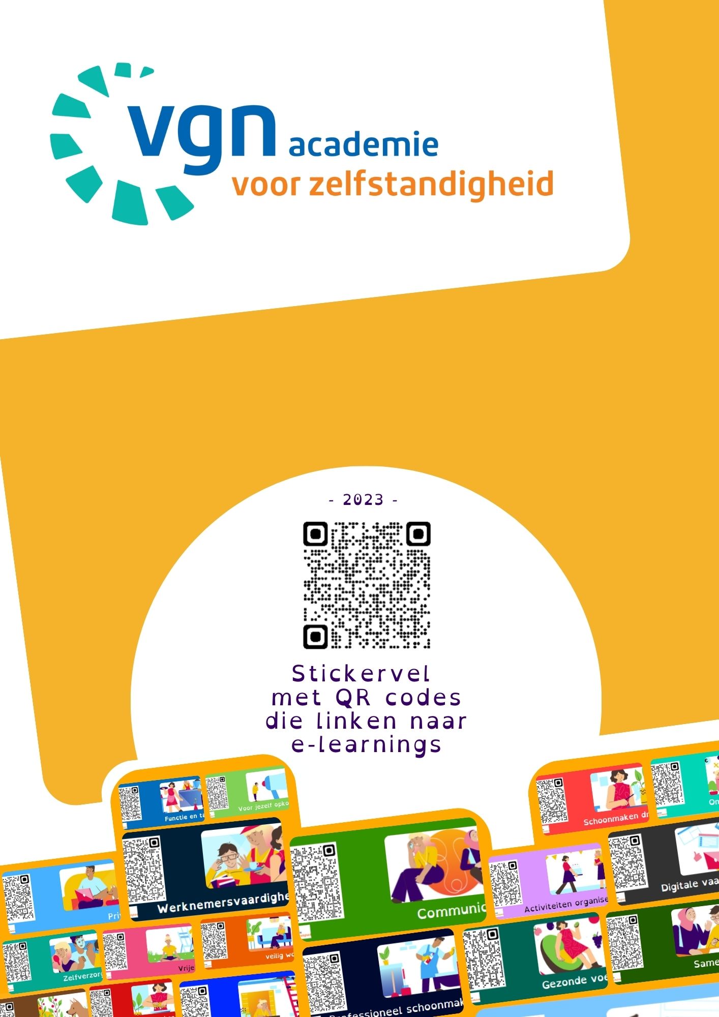 Stickervel met QR-codes met links naar de cursussen